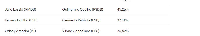 Outro fato importante daquela eleição foram os nomes escolhidos pelos candidatos para definir quem seriam os seus vices. Rosalvo Antonio (PSOL) escolheu Carlos Amorim (sem partido) e obtiveram 1,66% dos votos válidos. Vejam como ficou o restante das outras chapas: