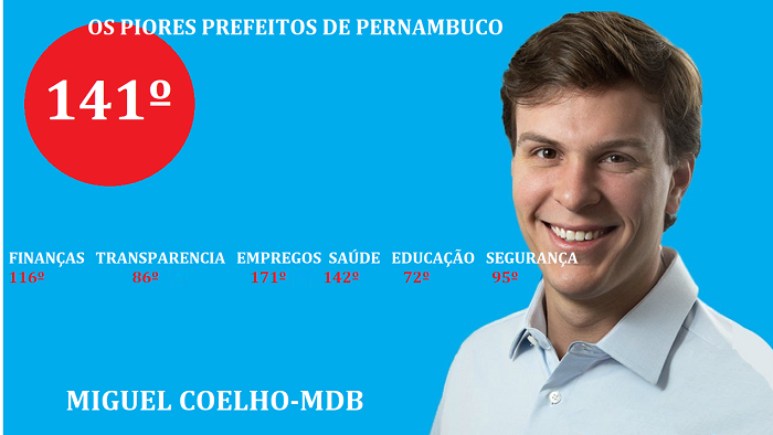 foi divulgado nesta última quinta-feira,24, o ranking dos piores e melhores prefeitos de Pernambuco e traz como destaque o prefeito de Petrolina, no Sertão pernambucano, Miguel Coelho (PSB) que ocupa o 141º lugar, segundo a OngLiberdade.PE.
