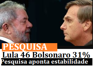 Pesquisa Ipec: Lula da Silva (PT) tem 46% e Bolsonaro (PL) aparece com 31%
